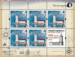 Россия. Петерспост. 300 лет маяку Толбухин. Лист из 5 марок и купона